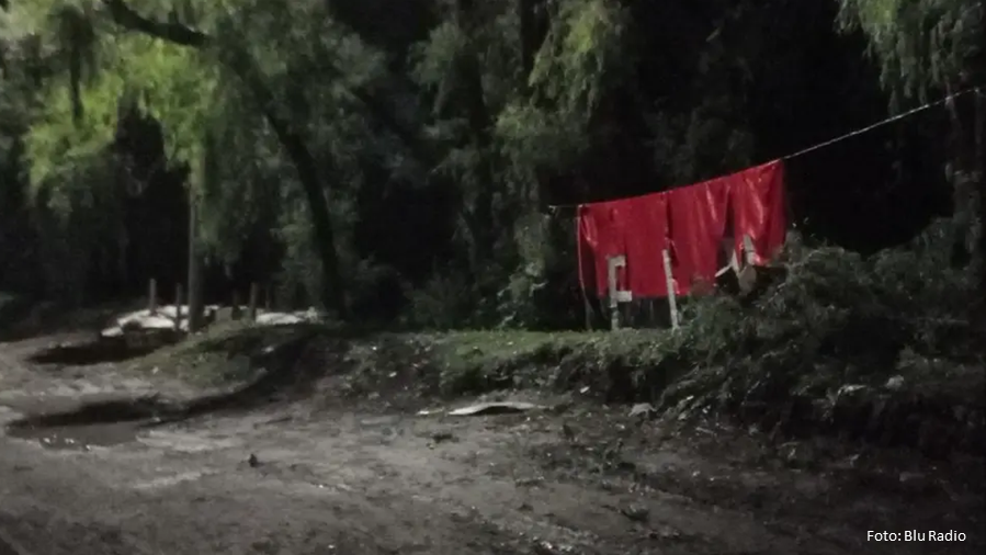 El hallazgo se produjo alrededor de la 1:30 a. m., cuando un trabajador de la concesión vial que realizaba su recorrido habitual observó la bandera sujetada a dos palos bajo un árbol.