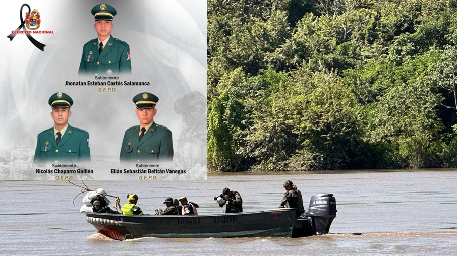 Las víctimas fueron identificadas como el subteniente Jhonatan Estiven Cortés Salamanca, oriundo de Bogotá; el subteniente Nicolás Chaparro Guillén, también de Bogotá; y el subteniente Elián Sebastián Beltrán Vanegas, nacido en Caparrapí, Cundinamarca.