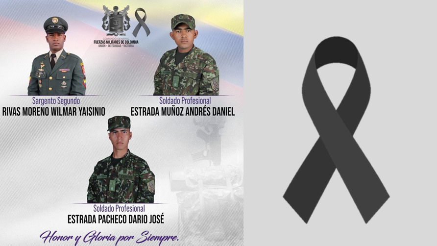 Los militares asesinados fueron identificados como: el sargento segundo Wílmar Rivas Moreno, y los soldados profesionales Darío Estrada Pacheco y Andrés Estrada Muñoz.