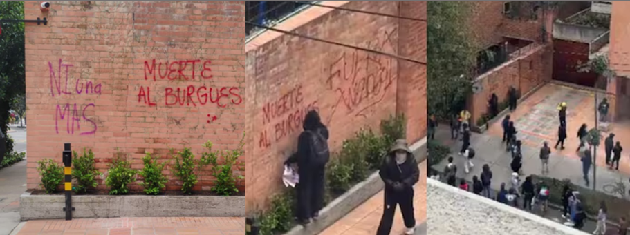 Los actos de vandalismo también se extendieron a las inmediaciones de la Zona T, un exclusivo sector de la ciudad donde se concentran empresas de distintos sectores e instituciones universitarias, tanto públicas como privadas. En el área se reportaron daños a bienes públicos y privados, así como la difusión de mensajes de odio de carácter clasista en las fachadas de varios inmuebles.