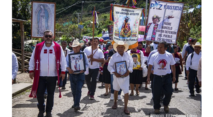 San Andrés Larráinzar (México) (EFE).- Más de veinte mil personas marcharon este lunes en Chiapas, sur de México, en memoria del sacerdote católico Marcelo Pérez Pérez, asesinado hace un año, para exigir justicia completa y castigo a los autores intelectuales de un crimen que sacudió el estado fronterizo, en medio de los altos niveles de violencia que vive el país.