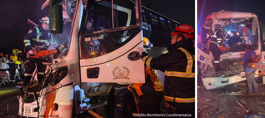 Un grave accidente de tránsito se registró en la noche del martes 24 de febrero de 2026 en la vía Siberia-La Punta, a la altura del municipio de Tenjo, en el departamento de Cundinamarca. El siniestro involucró a dos buses de las empresas CoontransRosal y Flota Santafe, lo que generó una rápida respuesta de los organismos de emergencia de la región, incluidos los cuerpos de bomberos, ambulancias y la Defensa Civil.